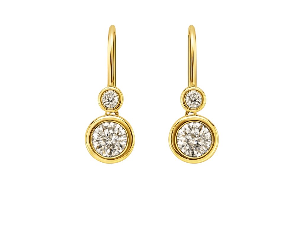 Dámské náušnice ze žlutého zlata, zdobené moissanity.