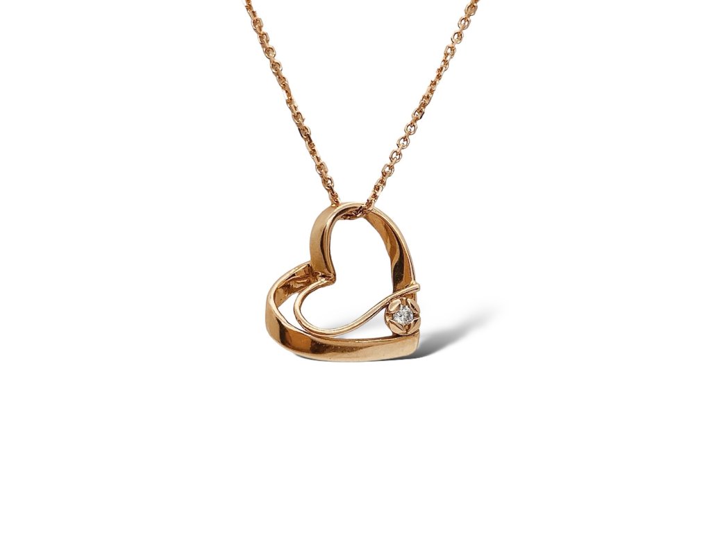 Dámský přívěs z růžového zlata. Přívěs ve tvaru srdíčka zdobený moissanitem. Řetízek není součástí přívěsku.