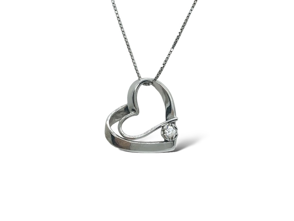 Dámský přívěs z bílého zlata. Přívěs ve tvaru srdíčka zdobený moissanitem. Řetízek není součástí přívěsku.