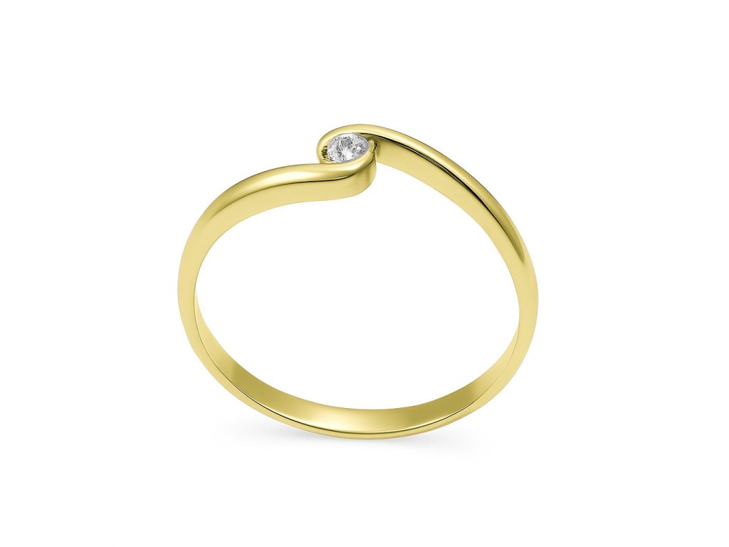 Krásný zásnubní prstýnek ze žlutého zlata AU 585/1000 zdobený briliantem. Prsten je oblíbený pro svoji jednoduchost.