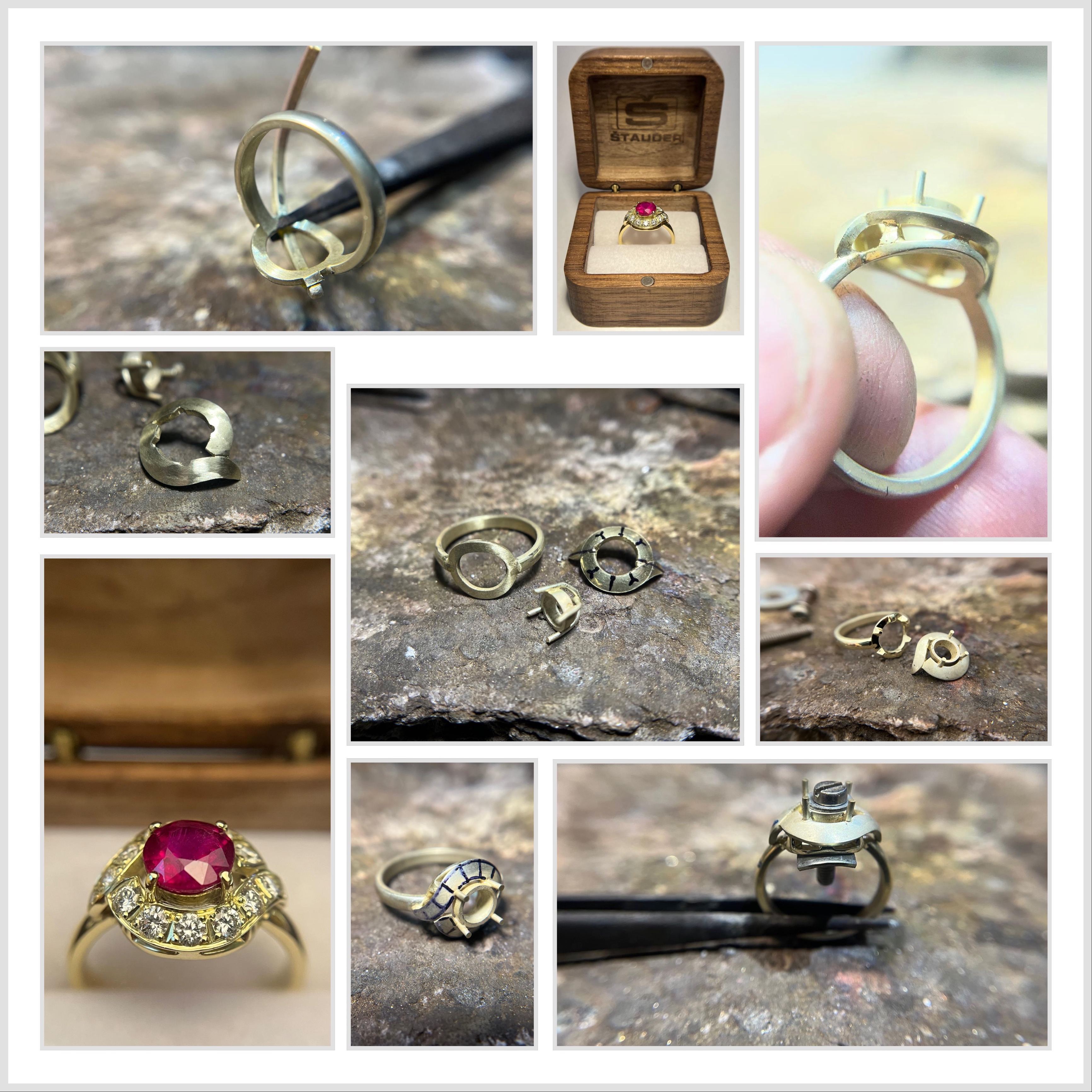 Ve výrobě šperků existuje několik výrobních postupů. Někdo spoléhá na modelování v PC programu, tisk z vosku a následné odlévání do zlata, já spoléhám na prastaré zlatnické řemeslo, tak jak jsem se mu v polovině ´90 let naučil. Šperky tedy vyrábím postaru, zlato válcuji, tepu, řežu, piluji, či letuji. Nechat si vyrobit šperk na zakázku znamená mít originál od zlatníka, nikoliv počítačově navržený šperk z PC programu.