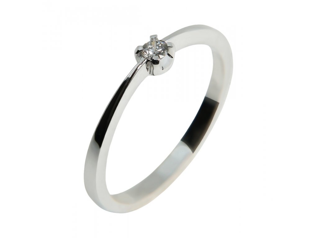Jemný zásnubní prstýnek z bílého zlata zdobený briliantem. Prsten je velice oblíbený pro svoji jednoduchost.