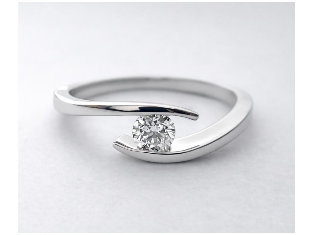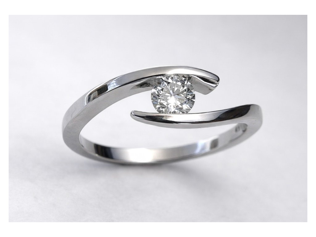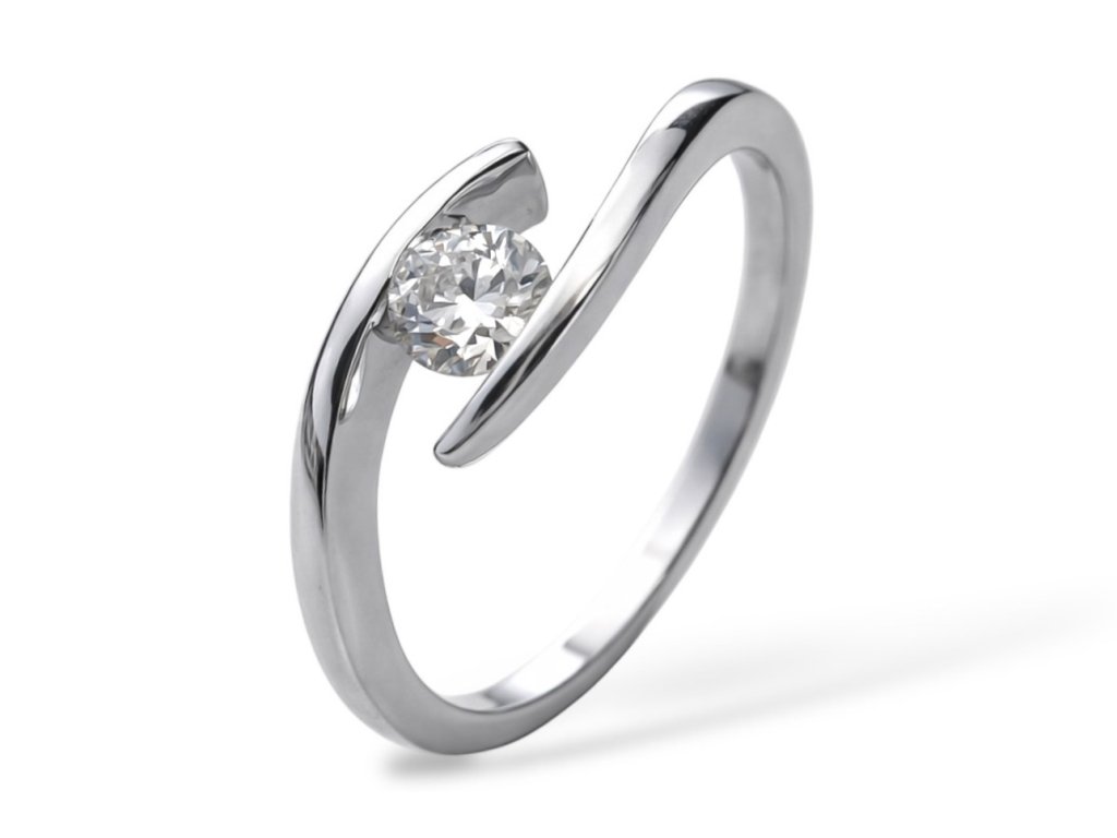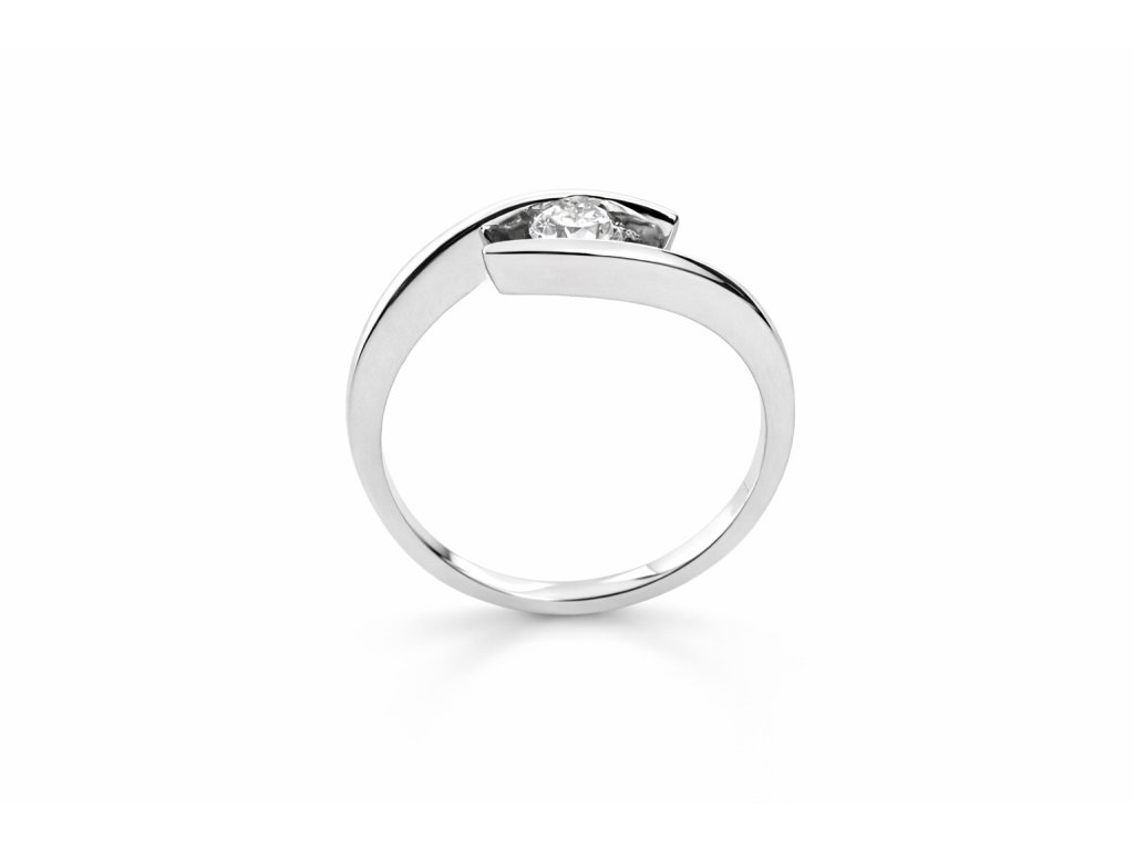 Krásný zásnubní prstýnek z bílého zlata, zdobený briliantem s mezinárodním certifikátem IGI.