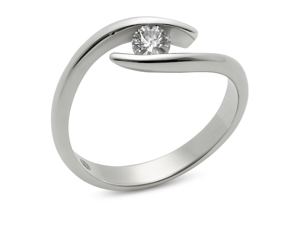 Krásný zásnubní prstýnek z bílého zlata zdobený briliantem.