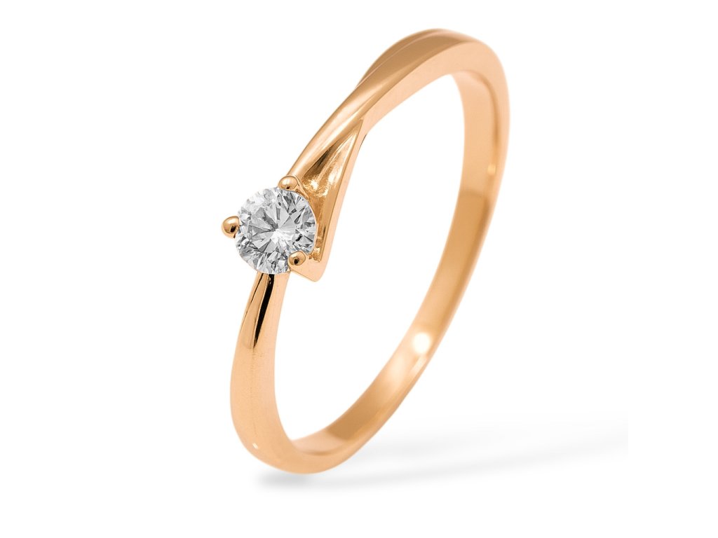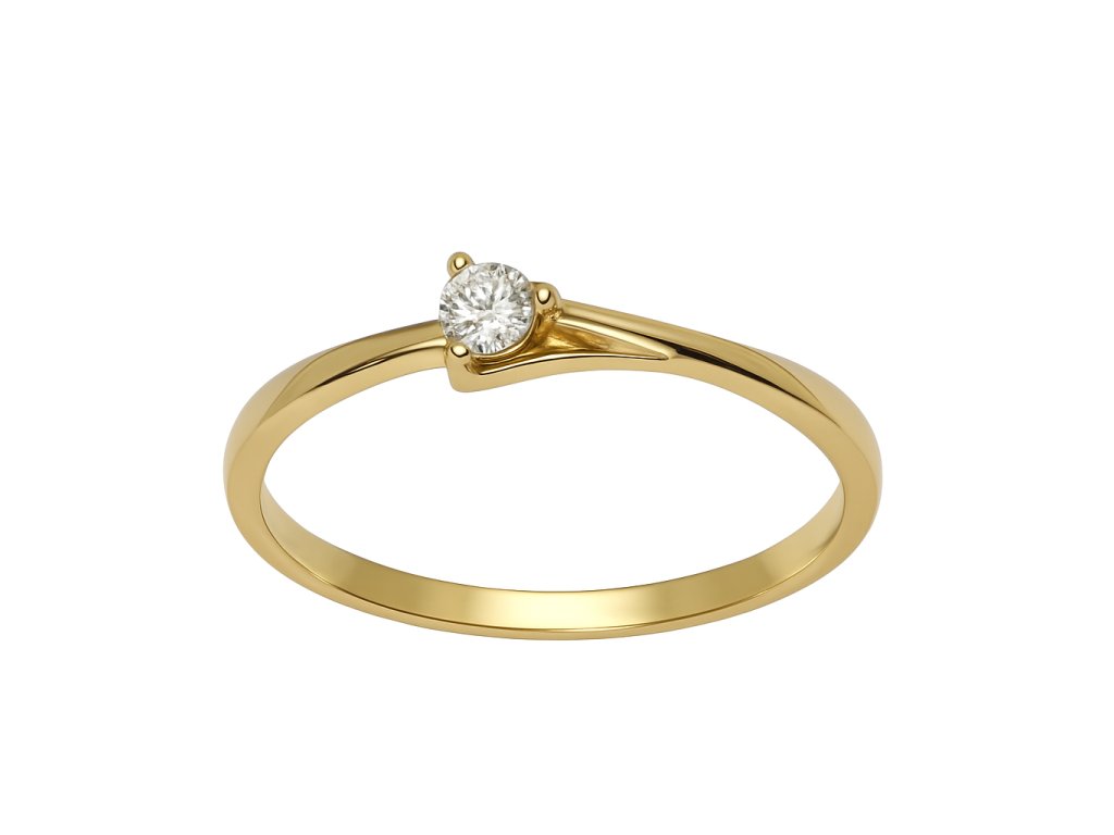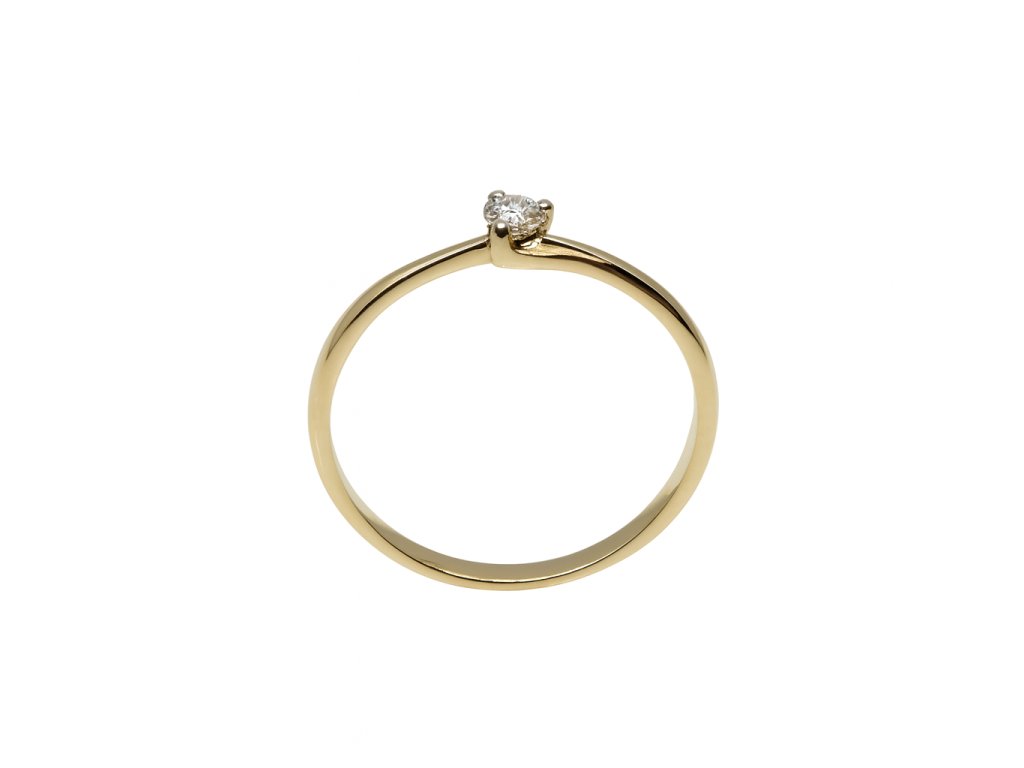 Elegantní zásnubní prstýnek ze žlutého zlata AU585/1000 zdobený briliantem. Prsten je oblíbený pro svoji jednoduchost.